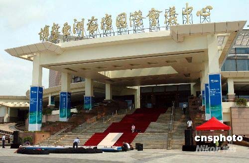 4月11日上午,工作人员在博鳌亚洲论坛国际会议中心布置会场。博鳌亚洲论坛2008年年会开幕式12日将在这里举行,各项准备工作有条不紊。中新社发 尹海明 摄