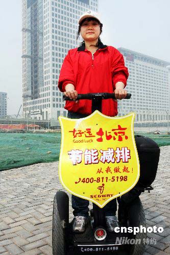 4月16日,北京一名奥运“鸟巢”的志愿者首次骑上奥运代步车进行服务。据介绍,北京奥运会赛时将有数十辆两轮代步车被应用到竞赛及非竞赛场馆内。其中,志愿者、安保以及维护人员进行巡视都将用到这种车。作者: 郑雄增