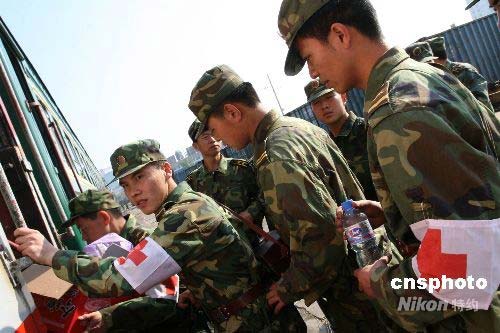 5月13日,驻许昌解放军某部官兵乘坐专列奔赴四川灾区开展救援工作。中新社发 牛书培 摄