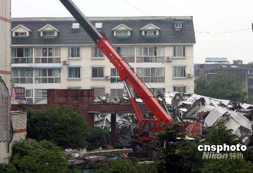 汶川地震灾区都江堰市因灾造成很大的破坏。图为5月13日拍摄的都江堰受灾非常严重的中医院。中新社发 黄荣 摄