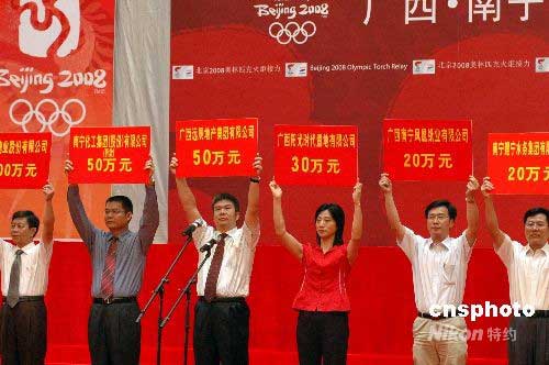 近三十家企业捐款支援四川灾区。中新社发 蒋雪林 摄