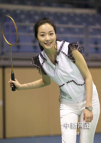 图:影视红星韩雪奥运羽毛球馆激情挥拍