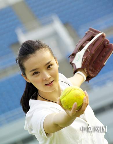 组图:“晴格格”奥运垒球场内亢奋击球
