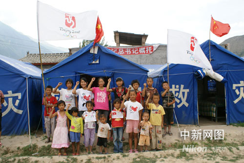图:重灾区孩子们用歌声祝福奥运平安(2)