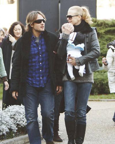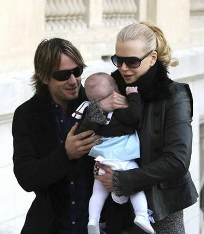 组图:妮可扁嘴逗爱女 一家三口幸福出游