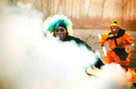 “沙僧”很敬业 洪海,31岁,雷人表现:练牵马,装扮怪异吓惊马。
