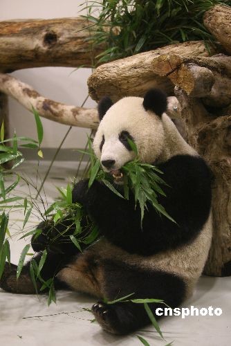 图:大熊猫团团圆圆住进台北新家大快朵颐