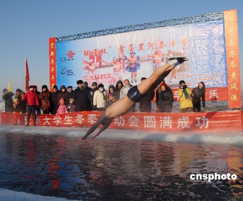 图:黑河首届冬泳节上妙趣横生的表演(2)