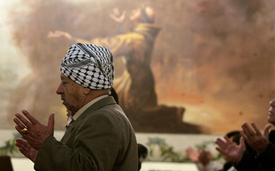 12月31日,一位在西岸城市拉马拉为和平祈祷的巴勒斯坦男子。面对国际社会巨大压力,以色列仍然拒绝停止对加沙地带的大规模空袭,最新统计数字显示,空袭已造成至少400人死亡,近2000人受伤。
