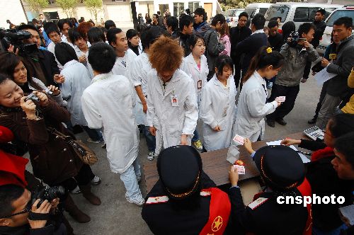 一月七日上午,广州铁道部门为番禺一家企业为外来工提供送春运返乡车票上门服务。广铁集团计划在四天时间为几十家企业上门送票十万多张。中新社发 柯小军 摄
