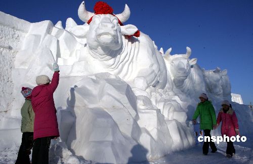 1月12日,以“冰情雪韵、和谐多伦”为主题的中国多伦诺尔冰雪节在内蒙古多伦县开幕,包括冰雪游园、大型冰雕雪雕展、冰灯花灯展等,冰雪景观有100余件。游客欣赏冰雕、雪雕之余,还可了解多彩的民俗风情和历史文化。中新社发 赵隽 摄