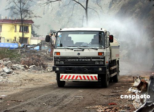 图:四川映秀镇依旧被封锁消毒防疫——中新网