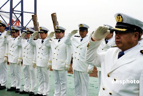 1月23日上午,上海振华港机集团在长兴岛基地为“振华4号”轮顺利返航举行盛大欢迎仪式,“振华4号”船长彭维源带领29名船员整装首次集体亮相,并向众媒体记者和现场来宾介绍了抗击索马里海盗的具体经过。欢迎仪式现场,振华港机集团向每位船员颁发1万美元奖金,并授予船长“振华功臣金质奖章”。北京时间2008年12月17日中午,中国交通建设集团所属“振华4号”轮在途径亚丁湾水域时遭遇2艘海盗船袭击,有9名海盗登船,持冲锋枪和火箭筒在甲板上与我船员对峙,我船上的30名船员用高压水枪和自制燃烧弹自卫并反击。海盗在随后赶来的国际救援军舰直升机的威慑下,终于放弃攻击,狼狈逃窜。中新社发 李根 摄