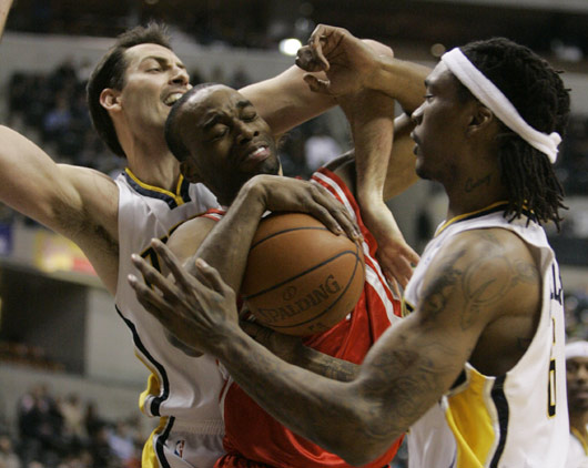 图:姚明膝盖受伤中途离场 火箭负步行者(3)——中新网