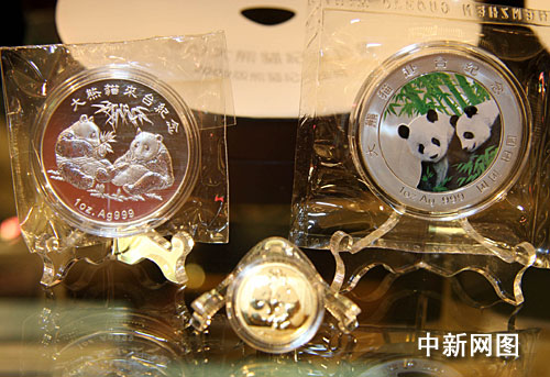 为纪念大熊猫团团、圆圆来台与民众见面。位于台北市和平东路三段68——1号的台湾大洋金银币有限公司特委请深圳国宝铸币厂和台湾“中央铸币厂”铸造大熊猫赴台纪念银章和大熊猫来台纪念银章各一枚。中新社记者 陈立宇 摄
