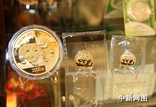 为纪念大熊猫团团、圆圆来台与民众见面。位于台北市和平东路三段68——1号的台湾大洋金银币有限公司特推出中国人民银行发行的2008、2009年熊猫纪念金币供台湾民众选购。中新社记者 陈立宇 摄