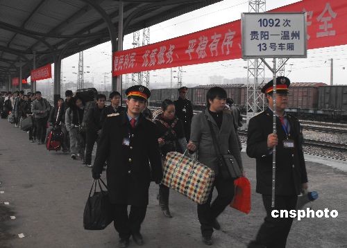 2月10日,贵州铁路运输部门迎来了元宵节后第一次客流高峰。中新社发 姜泽鹏 摄