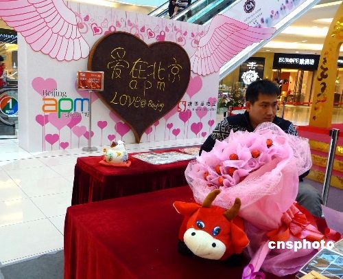 2009年2月11日,北京王府井各商场纷纷营造出浓郁的情人节气氛,迎接西方情人节的到来。 中新社发 玉龙 摄