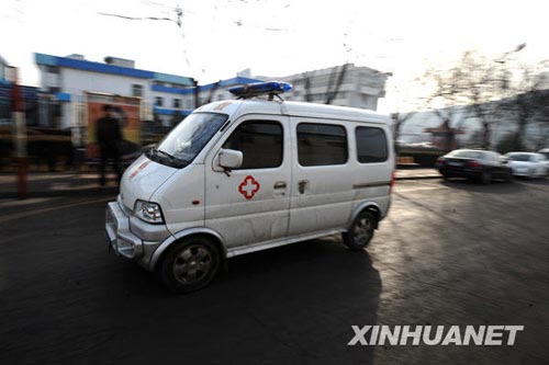 2月22日,一辆救护车正赶往事故现场。燕雁 摄
