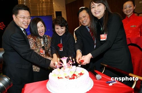 3月8日晚,参加全国政协十一届二次会议的妇联界委员们在驻地宾馆共度妇女节,并为当日生日的委员们共同庆生。中新社发 傅丹丹 摄