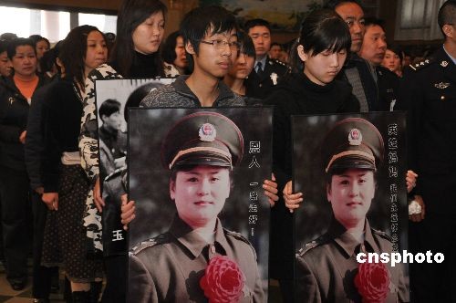3月18日上午,郑州市各界5000多人隆重悼别英雄女警王玉荣,为郑州公安女英雄、全国公安一级英模、三级警监、郑州市公安局中原分局原副局长王玉荣送行。13年前王玉荣冒着生命危险从身带炸药包歹徒手里解救出28名儿童和2名幼师人质并机智将歹徒击毙。后因积劳成疾与病魔顽强抗争7年后于2009年3月14日病逝,英年48岁。