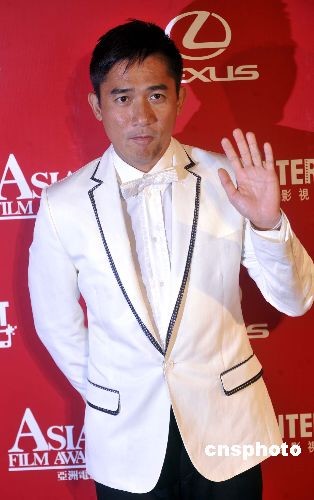 三月二十三日晚,第三届亚洲电影大奖颁奖典礼在香港会议展览中心隆重举行。香港影视娱乐大使梁朝伟出席与媒体挥手。中新社发 邓庆乐 摄