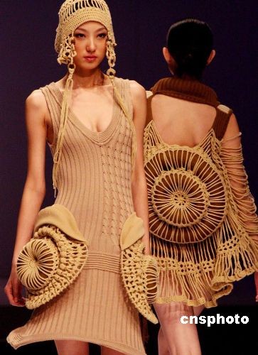 3月26日,2009中国针织时装设计大赛决赛在北京举行的中国国际时装周上开赛。共有来自13个地区的24份作品入围最后决赛,针织时装设计是时装设计中算较为特殊的领域,由于现代社会的流行趋势越来越归于自然,舒适自然的服装得到了年轻一族的喜爱,针织时装的优势逐渐凸显。图为模特展示2009中国针织时装设计大赛作品。中新社发 钱兴强 摄