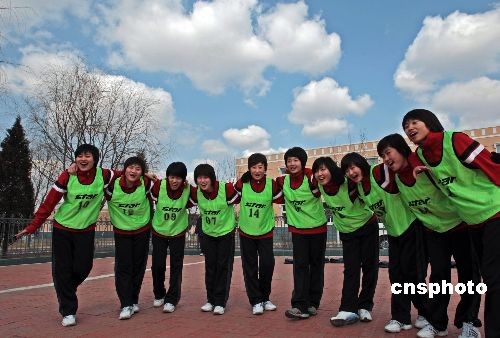 图为3月30日,女飞行学员们把体能考试当成放松心情的一种方式,她们互相呐喊鼓劲。