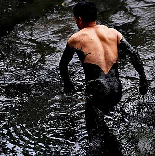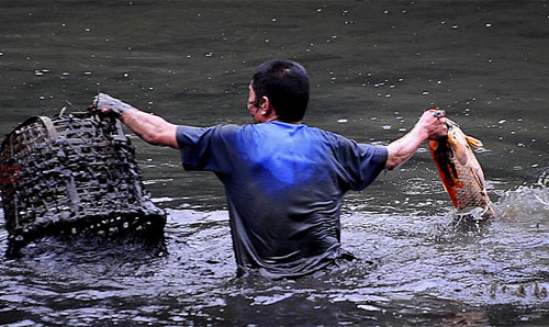 据华农某施工队的郑师傅说,学校为了迎接校庆,计划缩小池塘面积,并重新规划周边区域。约一周前就开始不分昼夜抽水,至昨日满塘水被抽到塘底。昨日中午就开始有人下水捉鱼,大头鱼、鲤鱼、鲶鱼……品种很多,每条最少五六斤,几个小时内已捞起近千斤鱼。昨日下午3时许,曾有校卫过来驱赶捕鱼者。但校卫一走,众人又一窝蜂下水,之后再无人来干涉。