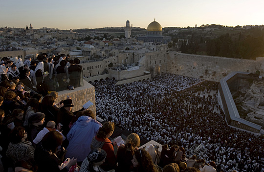 图:数万犹太人哭墙前向太阳祈福(3)