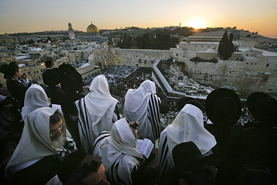 图:数万犹太人哭墙前向太阳祈福(4)