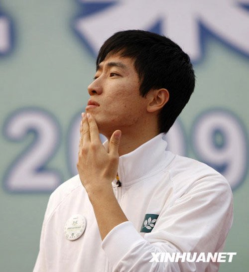 4月12日,刘翔在长跑节启动仪式上。当日,2009北京国际长跑节在天安门广场启动。王丽莉 摄