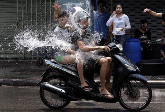 特写:曼谷军民泼水节"水火交融" 旅游业受重创