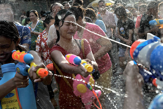 特写:曼谷军民泼水节"水火交融" 旅游业受重创