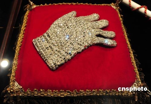 图为1983年杰克逊演唱《比利·简》(Billie Jean)时所戴的镶满水晶的白手套。
