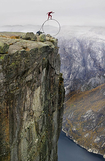 图:挪威艺术家300多米悬崖边演绝技(4)