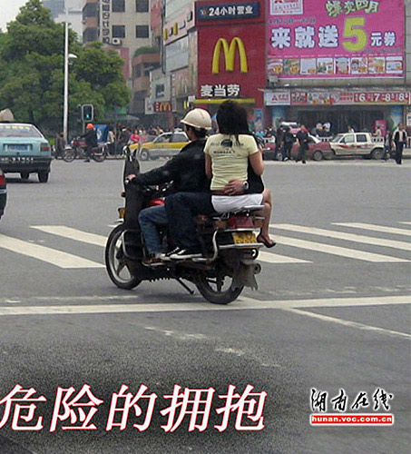 图:情侣街头打摩的 坐姿堪比杂技表演(3)