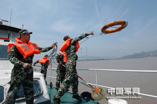 4月16日,一场以海难救援为背景的海上救生实战演练在浙江省温州市瓯江口海域展开。为更好地应对各种海上突发状况,武警温州边防支队针对辖区海域特点,积极开展海面搜救、淹溺人员捞救、重症船员急救等科目演练,以提高海上应急救助能力。(吴水斌 )