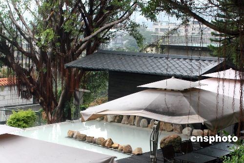 “禅园”的庭院内有品质优良的温泉浴池。中新社发 耿军 摄
