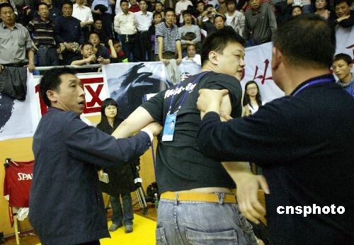 CBA赛场竟现球迷互殴 夫妇二人追打一男子(图)