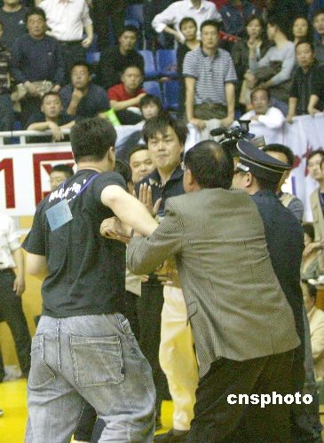 CBA赛场竟现球迷互殴 夫妇二人追打一男子(图)