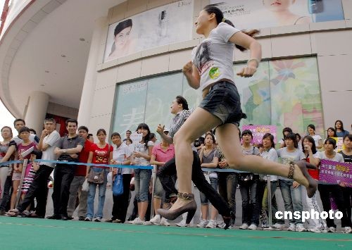 高跟鞋跑步大赛趣味横生。中新社发 彭寰 摄