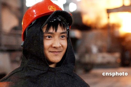 图:跳水明星田亮扮演雷锋亮相东北特钢(3)