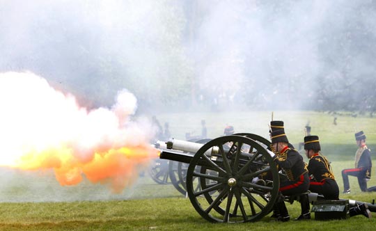 4月21日,英国皇家骑兵鸣放礼炮庆祝英国女王伊丽莎白二世83岁寿辰,官方的庆祝活动将在6月举行。