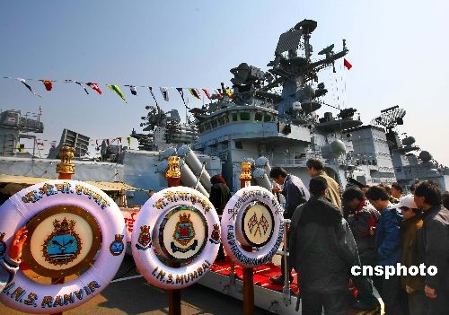 图为印度“孟买”号导弹驱逐舰。中新社发 宋吉河 摄