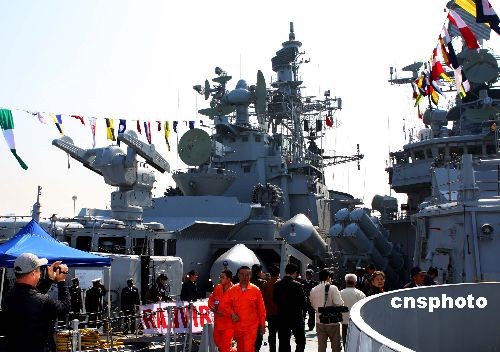 4月22日,一些青岛市民有幸参观停靠在青岛解放军海军码头参加庆祝中国人民解放军海军成立60周年多国海军活动的各国舰艇,各国海军官兵也相互登舰参观。中新社发 宋吉河 摄