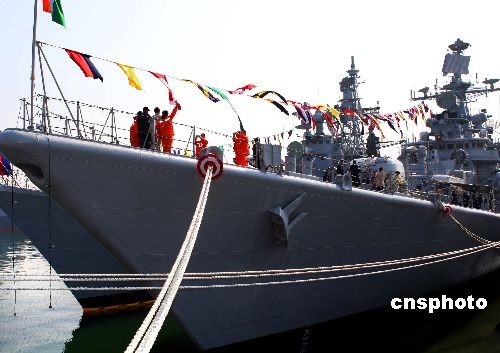 停靠在青岛解放军海军码头参加庆祝中国人民解放军海军成立60周年多国海军活动的各国舰艇,4月22日各国海军官兵相互登舰参观,同时各国舰艇对青岛市民开放。中新社发 宋吉河 摄