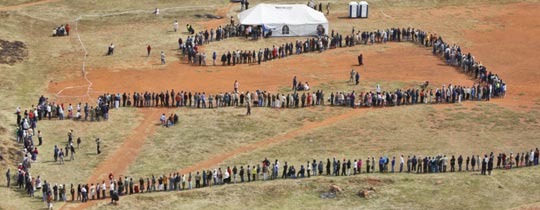 蜿蜒的投票“长龙”。