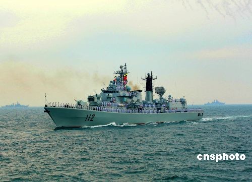 胡锦涛主席出席海上阅兵活动检阅海上战舰编队