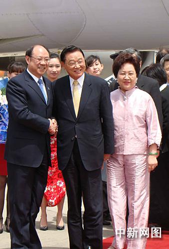海协会副会长郑立中在机场迎接江丙坤一行。记者 丁梅 摄